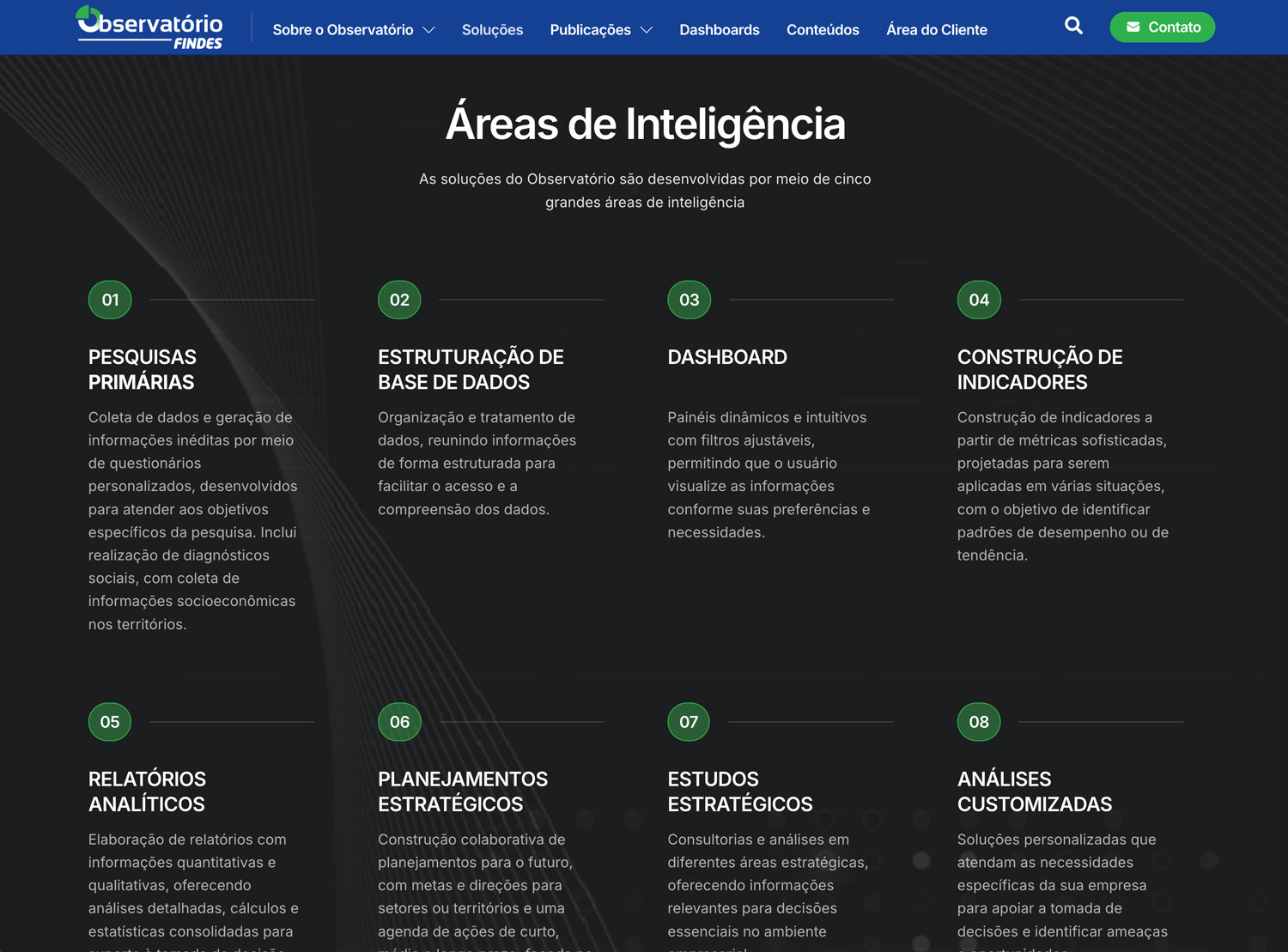 Nosso desafio foi traduzir uma grande quantidade de informações em uma plataforma intuitiva, organizada e responsiva — mantendo o rigor analítico, sem abrir mão da navegabilidade e da clareza visual.